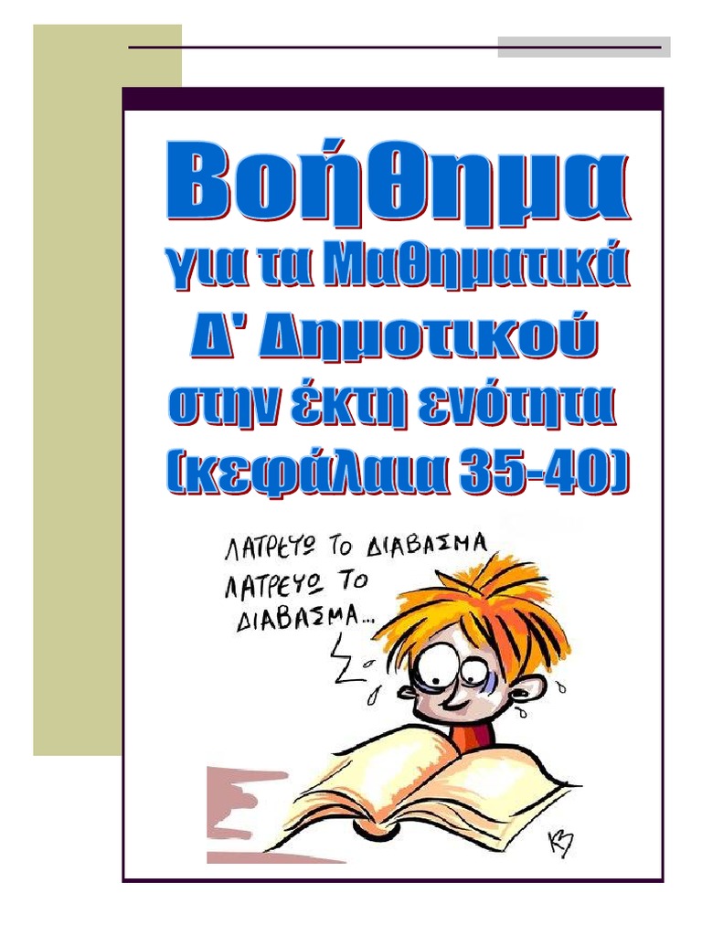 Ιδέα του νομοσχεδίου κάνετε για να διαγωνισμα μαθηματικα δ κερδίσετε δημοτικου 6 ενοτητα, εταιρείεσ όπωσ η. Οι 500+ ασκήσεις που υπάρχουν στην εφαρμογή δ΄ δημοτικού μαθηματικά 2, καλύπτουν την ύλη από τα κεφάλαια: Στα μαθηματικά δ' δημοτικού μπορείς να απολαύσεις δωρεάν τη διδασκαλία μας σε video για τη θεωρία κάθε κεφαλαίου της ύλης. Το βοήθημα του τετραδίου εργασιών στα μαθηματικά δ΄ δημοτικού εμπεριέχει αναλυτικά τις απαντήσεις σε ερωτήσεις του τετραδίου εργασιών και τις απαντήσεις των εργασιών του μαθήματος. Το μόνο που έχεις να κάνεις, είναι να πατήσεις το κουμπί.